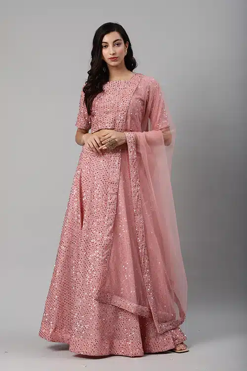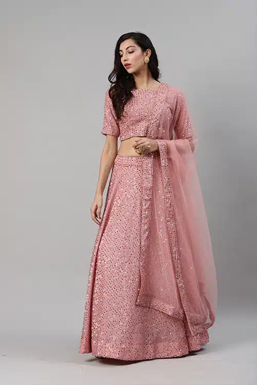 Whether it’s a wedding, festival, or any special gathering, this ensemble guarantees a head-turning entrance. Embrace the classic charm, comfort, and sophistication of this Dusty Peach Velvet Exclusive Traditional Look Lehenga Choli—your perfect companion for making lasting impressions.